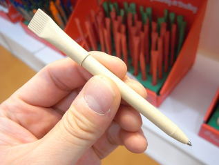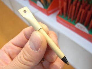 これらは主にイギリス、フランス、ドイツ等に輸出されている。また同じく再生紙を使ったペンの中で、もう一つ面白いものがあった。